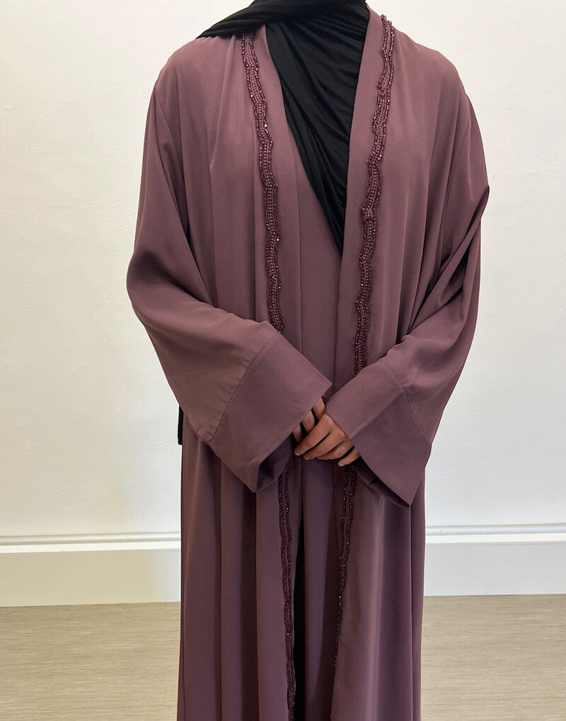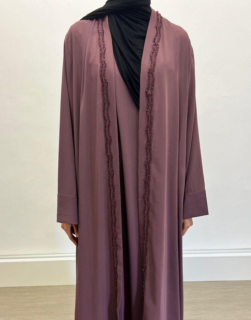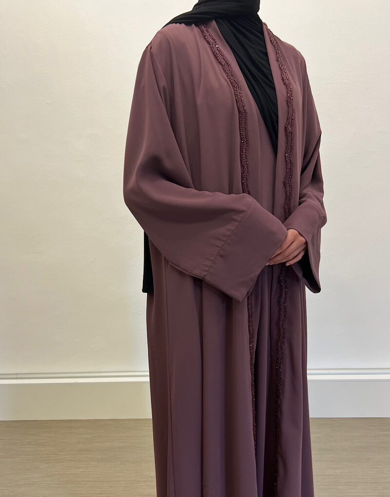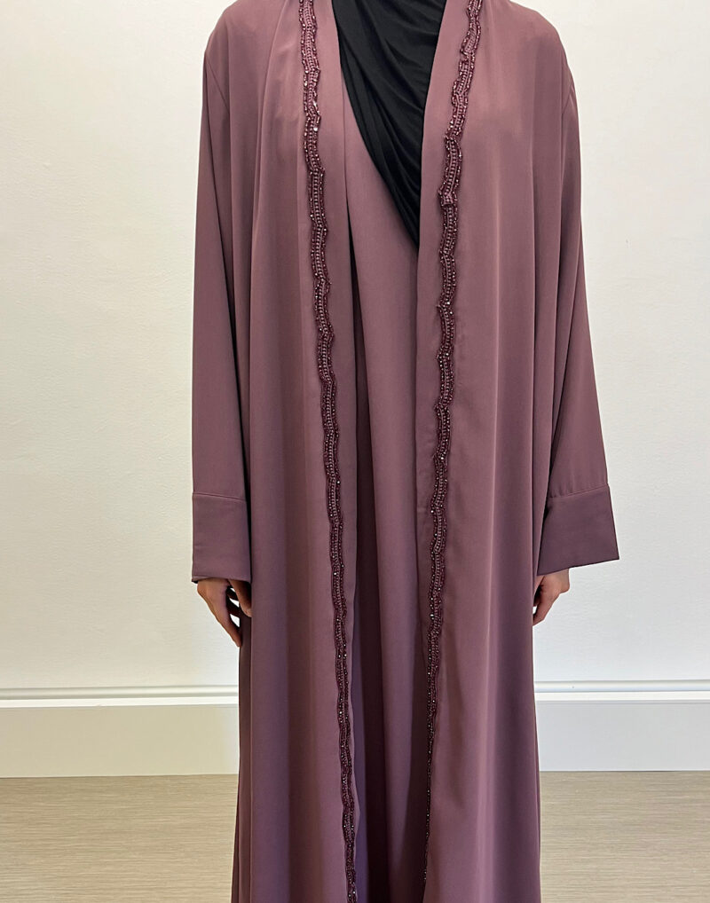 Découvrez l’ensemble Emiraty Prune, composé d’une sous-robe élégante et d’un kimono raffiné. Tout d’abord, il s’adresse à la femme musulmane moderne en quête de pudeur et de style. Ensuite, sa coupe fluide apporte confort et légèreté au quotidien.